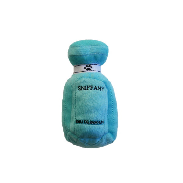 Your furry fashionista can express themselves with class, style and confidence while playing with this classic Sniffany & Co Dog Toy. The pawfum bottle is made from soft plush, featuring the Tiffany blue colour and black embroidery. Fitted with a squeaker inside to keep your dog entertained.