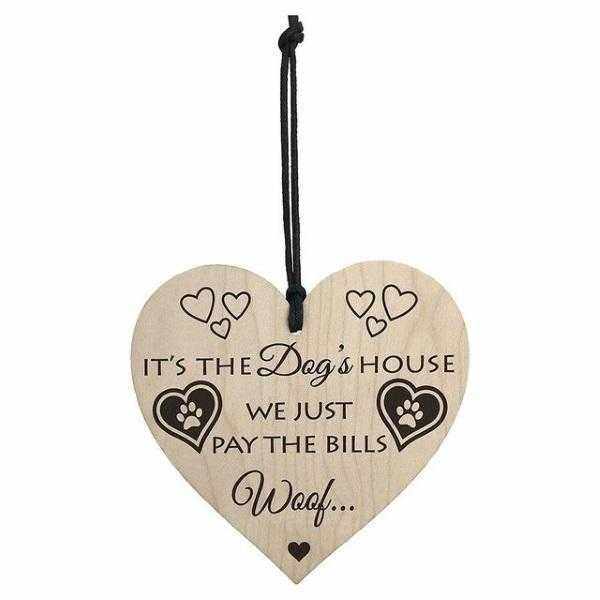 It's The Dogs House We Just Pay The Bills - Hanging Heart Plaque