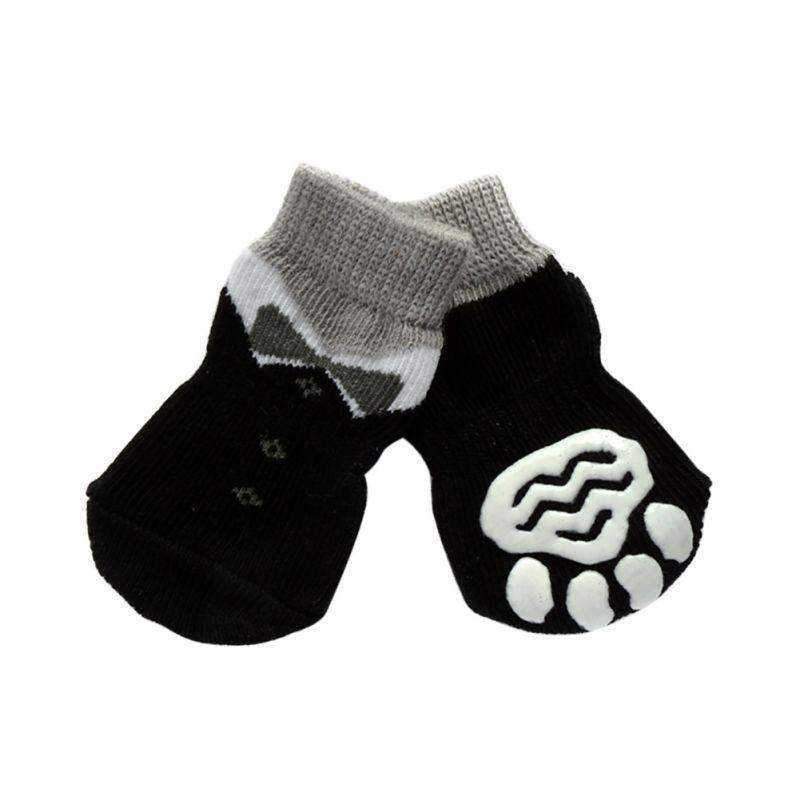 The Tuexdo Black Dog Socks are a stylish accessory to complete any outfit or perfect just on their own. Black socks with a grey bow tie and light grey trim. These non skid dog socks are perfect to prevent sliding on slick floors, paw protection for wounds, protecting hardwood floors... See more info